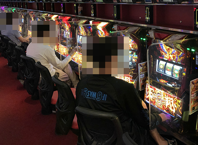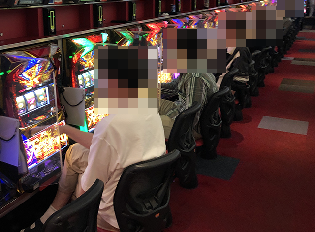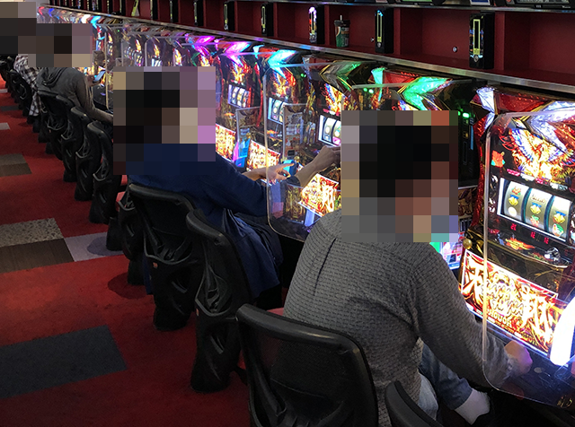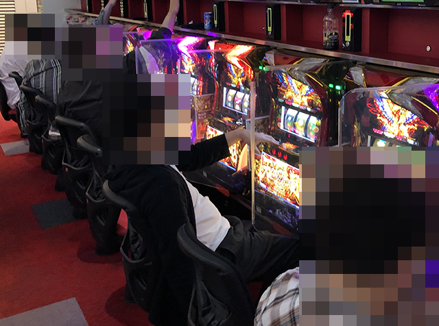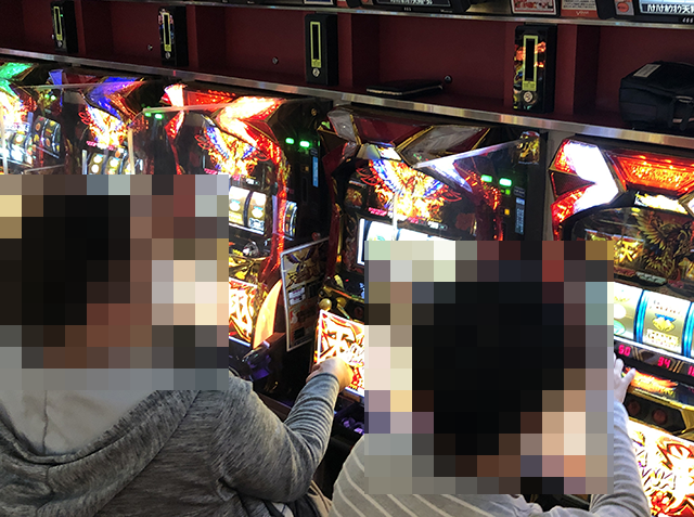 なかでも、存在感を放っていたのが、「ハナハナホウオウ~天翔~-30」で遊技をおこなっているプレイヤーだ。