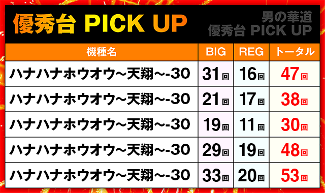 ピックアップしたのは「ハナハナホウオウ~天翔~-30」の5台。