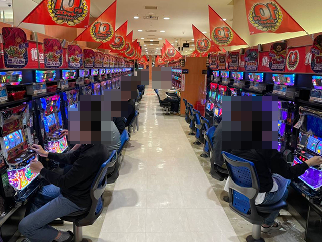 パチスロとパチンコの両方から盛り上がりが感じられた「エヌワン万代店」。機種を問わずに、楽しそうに遊技をおこっているプレイヤーを目にした。