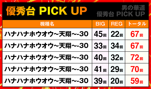 「ハナハナホウオウ~天翔~-30」から5台の優秀台をチョイス。