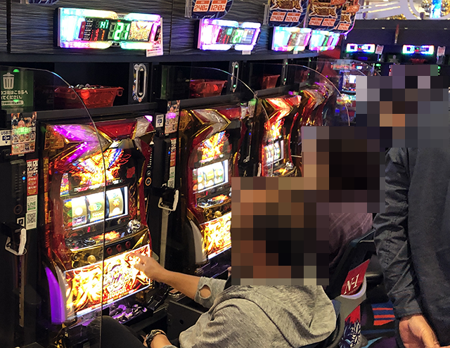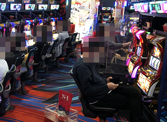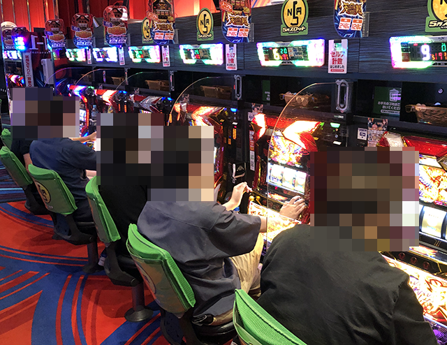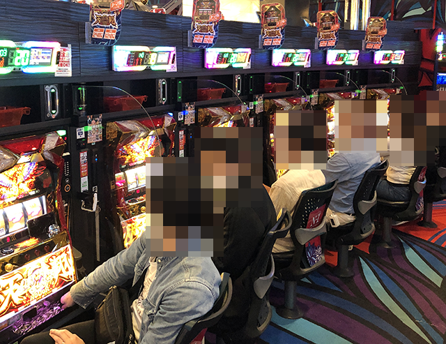 また、低貸し玉コーナーに設置された「ハナハナホウオウ~天翔~-30」も好評。楽しそうに遊技をおこなう姿がズラリと並んでいた。