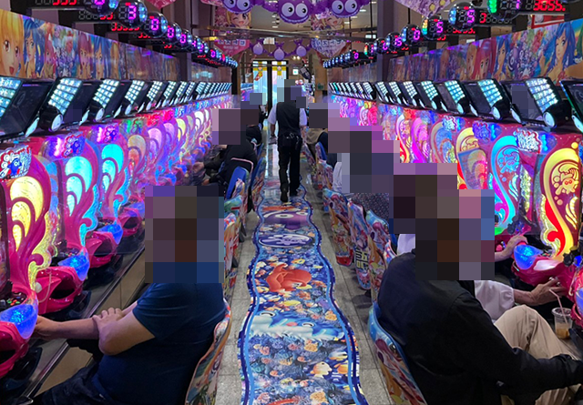 夕方頃のパチンココーナーは、各シマが明るいムード。