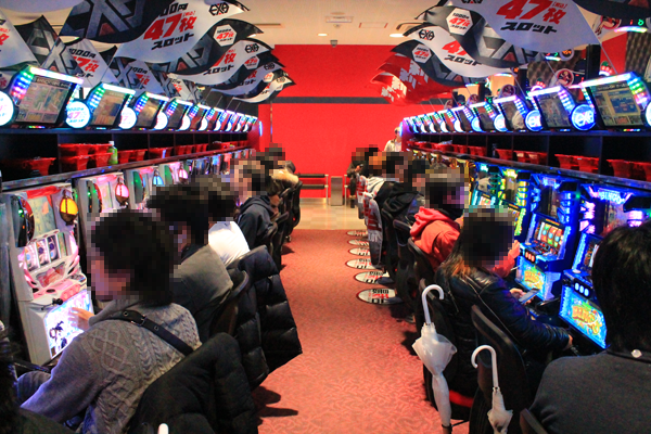 開店すると「SLOT魔法少女まどか☆マギカ」、「押忍!サラリーマン番長」、「バジリスク~甲賀忍法帖~絆」がすぐさま満席になり、小役カウンターを準備する姿が見られた。パチスロに詳しいと思われるプレイヤーが多数いたことから、ホールへの期待の高さも感じられた。