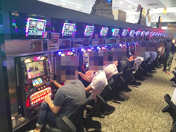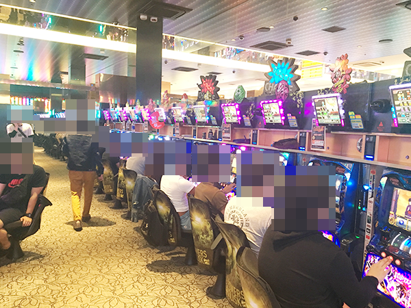 おなじく、AT機の「パチスロ北斗の拳 強敵」や「アナザーゴッドハーデス」なども活況。手腕を振るうプレイヤーも目立ち、きらびやかな光景が広がっていた。
