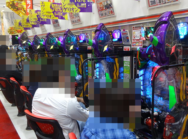 楽しそうに遊技をおこなうプレイヤーが並んでおり、シマ内は活況。