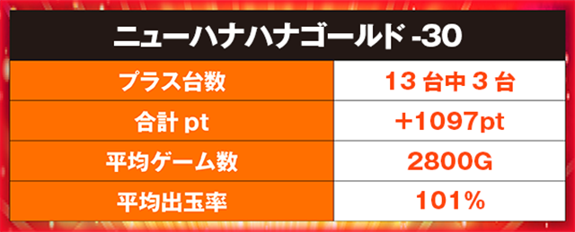 最終的には3台がプラスとなり、機種全体で+1097ptを記録した。