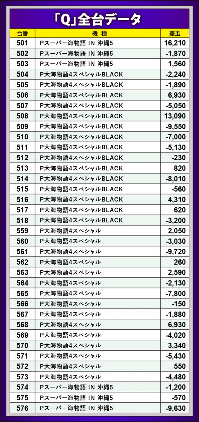 『Pスーパー海物語 IN 沖縄5』501番台+16,210玉という記録に目を奪われるばかりで、その他でもコンスタントな大当りが発生していた。『海物語』シリーズの島は全体的に安定しており、それでいて活気と熱気に満ちるなど、パチンココーナーを牽引する存在となっていた。結果こそマイナスを記録しているが、多くのファンから信頼を寄せられていることが如実に窺える内容だったのは確かだ。