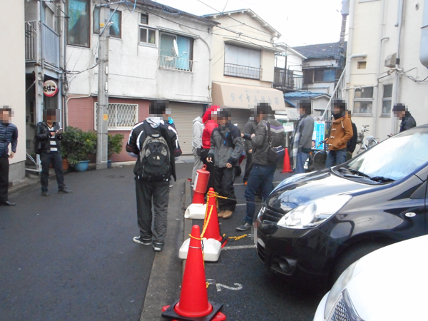 この日は朝の8時40分から店舗裏口にて入場抽選が行われており、抽選に参加したプレイヤーは裏の入り口から一般入場は正面入り口からとなっていた。ホール前に多数のプレイヤーの姿があり、入場抽選と一般入場の並びの比率は同じくらいだ。