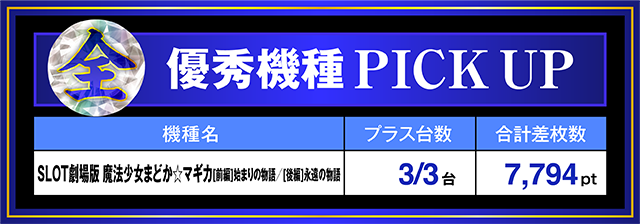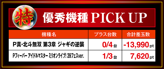 3台がならんでプラスとなっただけではなく、どちらの機種にも+3,000pt超の台があった。