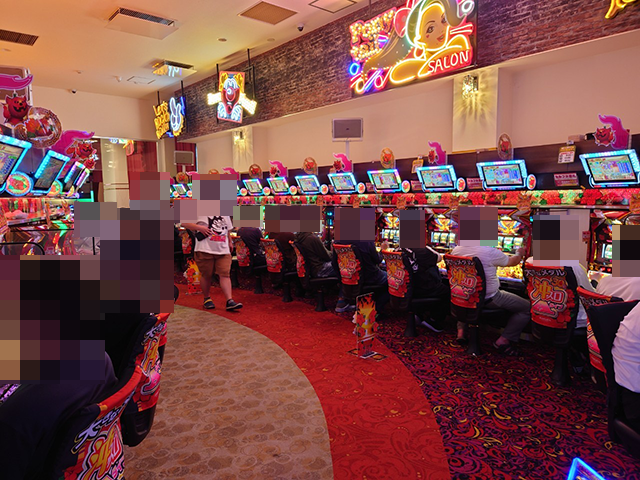 広々とした店内には500台以上のパチスロが設置されており、機種のラインナップも充実している。