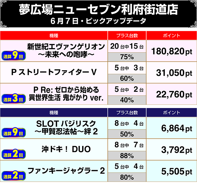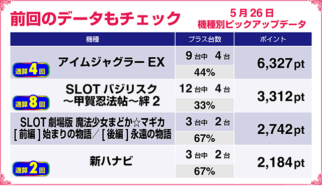 全台がプラスを記録する機種もあるなど、狙い目が多かった印象だ。