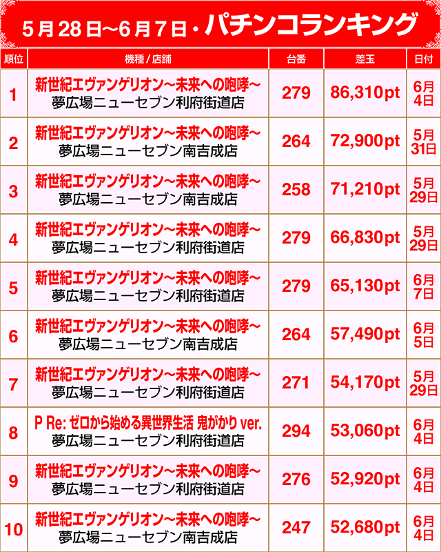 新台入替もおこなわれた5月28日から6月7日までの11日間!!