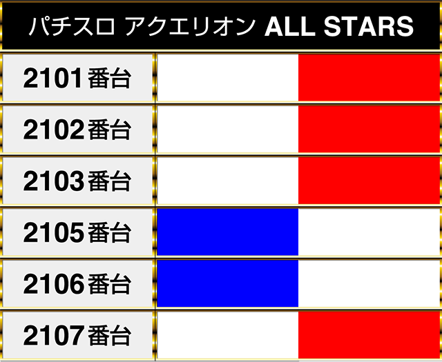 『パチスロ アクエリオン ALL STARS』は設置されている6台のうち、4台がプラスptとなった。