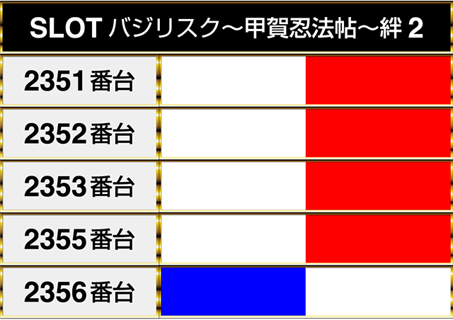 『SLOTバジリスク~甲賀忍法帖~絆2』の4台が並んでプラスptを記録!!