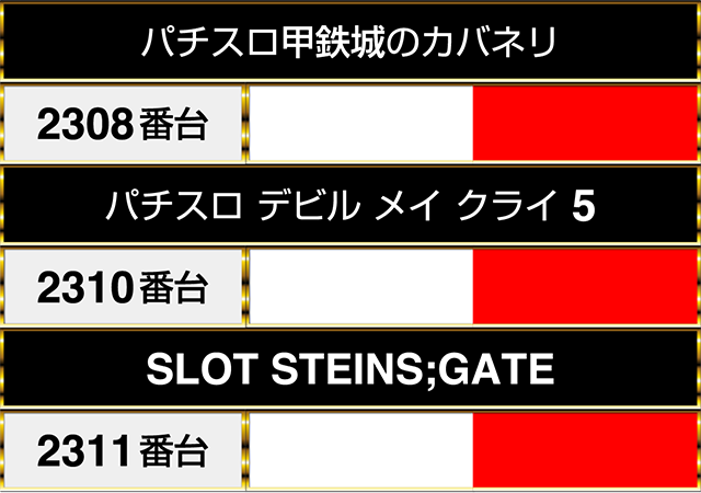 最終的には2308番台の『パチスロ甲鉄城のカバネリ』から2311番台の『SLOT STEINS;GATE』までが連なってプラスpt!!
