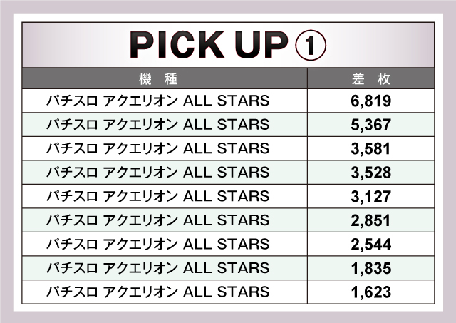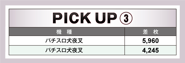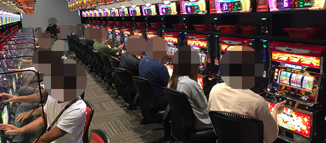 そして驚くべき盛り上がりを見せていたのが、新機種の『パチスロ アクエリオン ALL STARS』。設置してある28台中、9台が差枚1,000枚以上を記録。同ホールが、この機種を大事に育てようとしていることが容易にうかがえる。他にも『アイムジャグラーEX』や『パチスロ犬夜叉』といった定番機種から人気機種まで、様々な機種から歓喜の声が聞こえるようであった。