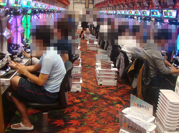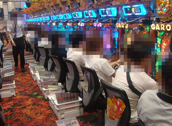 朝イチのホール内ではパチンコ・パチスロを問わずに、多数の機種がほぼ満席といった状態。