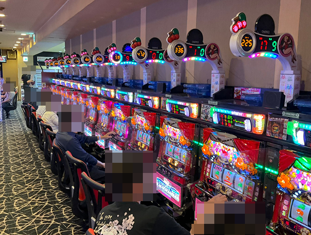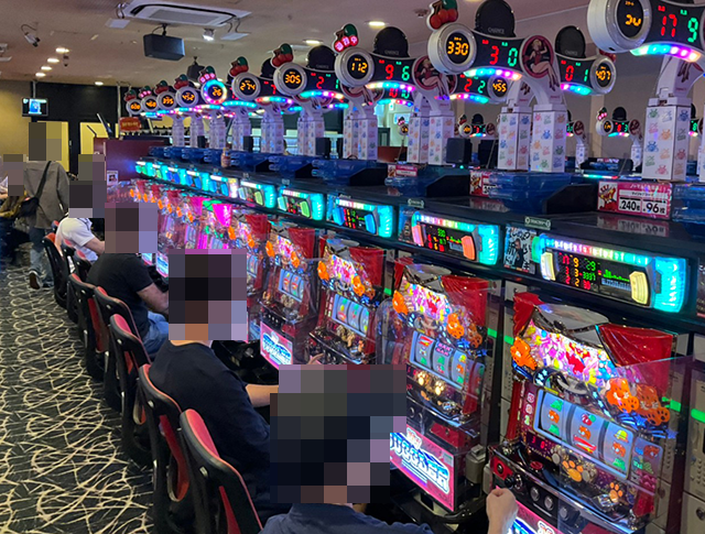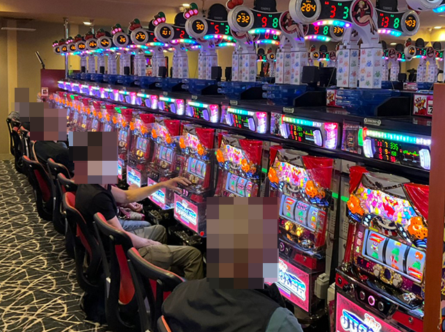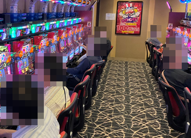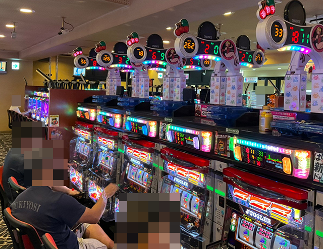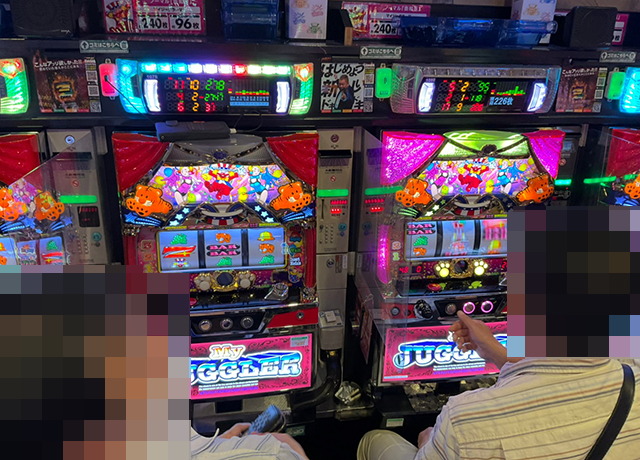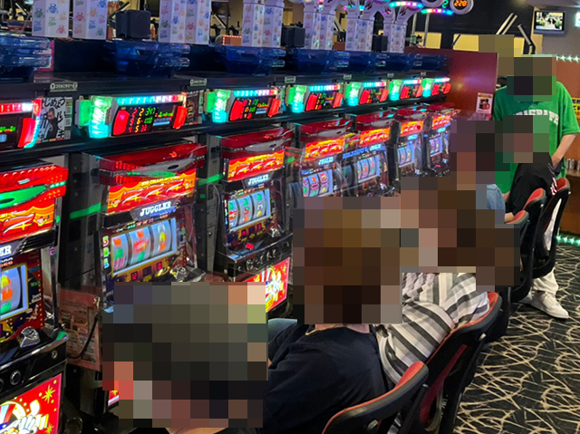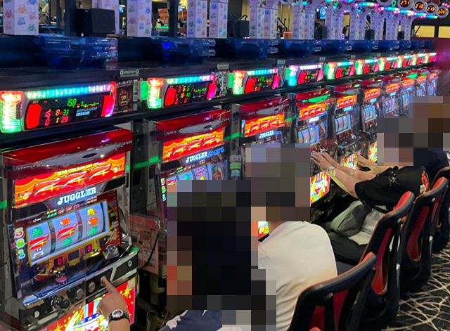 にぎわっている場所がいくつもあるなかで、とくに目立っていたのが『マイジャグラーV』。