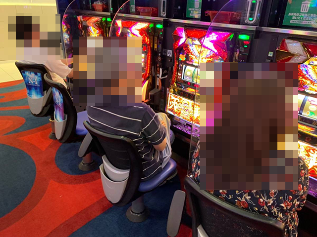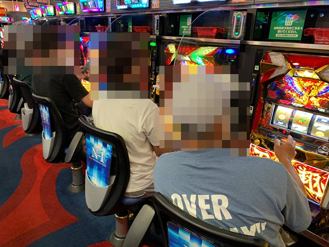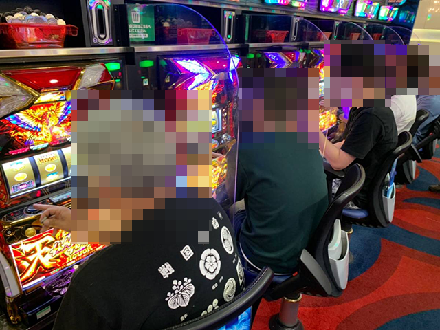 また、5円パチスロでも「ハナハナホウオウ~天翔~-30」は人気。うれしそうに遊技をおこなう姿が並んでいた。