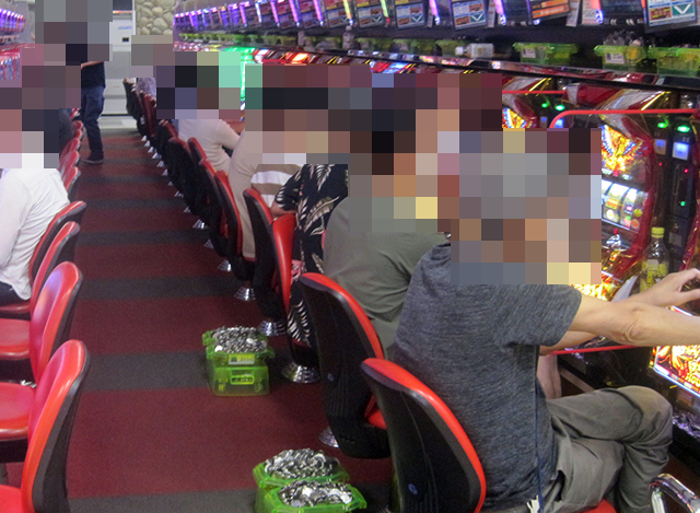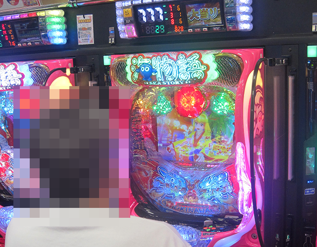 パチンコとパチスロの両方で、うれしそうに遊技をおこなっている姿に出会えた。