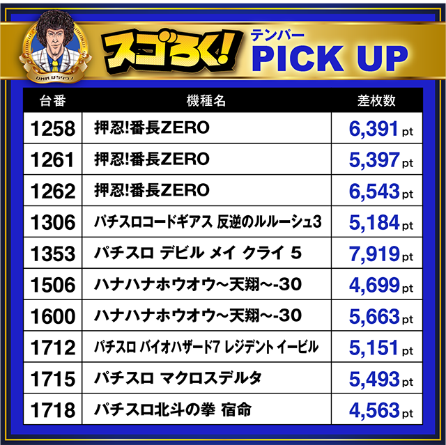 「押忍!番長ZERO」からは、6,000pt超えを2台、5,000pt超えを1台セレクト。