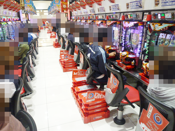 4円パチンコでは、「ぱちんこCR真・北斗無双」の空き台がなく、ほぼ満席といった状態。