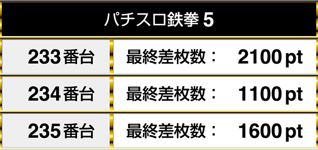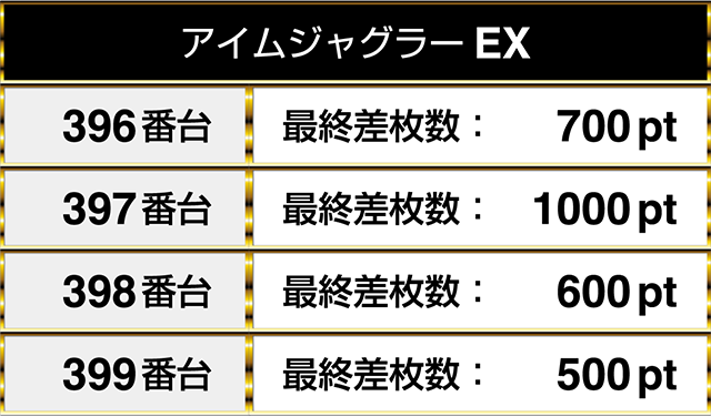 『アイムジャグラーEX』は4台が連なってプラスptとなり、1台は1000ptであった。