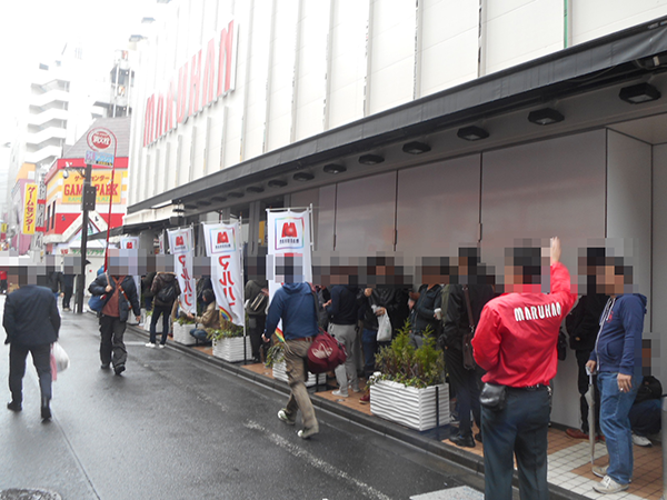 REAL取材Ωの2日目となる4月3日は、9時40分からおこなわれている入場抽選に参加した人と一般入場を合わせて、約160名が開店前から来店。