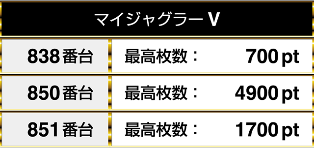 4900ptや1700ptがあった『マイジャグラーV』も3台が連なってプラスpt!