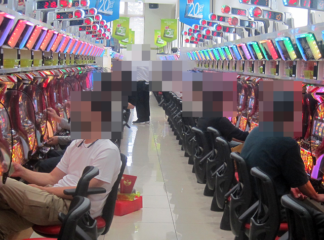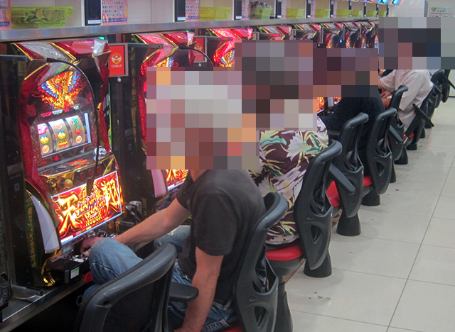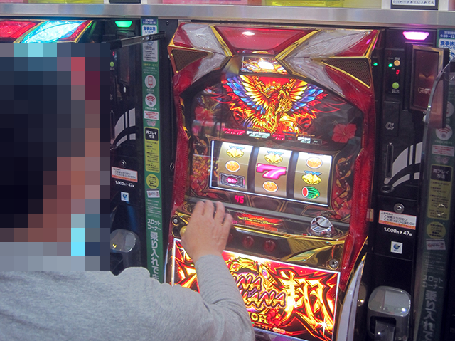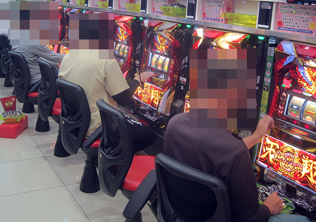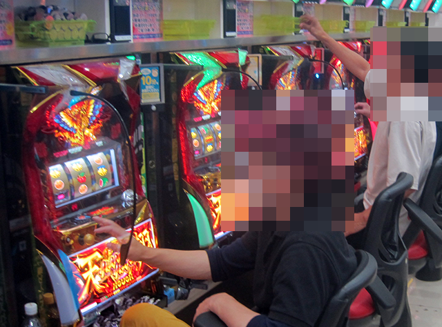 パチスロコーナーの雰囲気は明るく、うれしそうに遊技をおこなっている姿がさまざまな機種にあった。