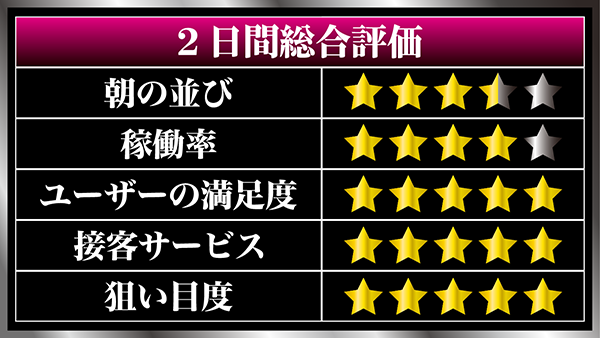 また、「ぱちんこCR真・北斗無双」や「CRフィーバー機動戦士ガンダムLAST SHOOTING」などのにぎわいも大きく、活気のある雰囲気が4円パチンコ全体を包みこんでいるイメージであった。