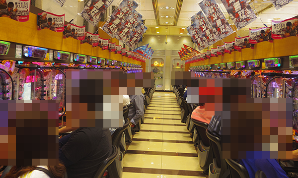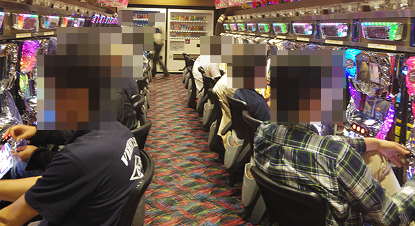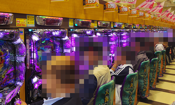 午後の4円パチンコでは、「ぱちんこCR真・北斗無双」が人気を集めており、空き台は残りわずかとなっていた。笑みを浮かべての遊技となっているプレイヤーも多く、この日の取材のなかでもひときわ活気が感じられたシマである。