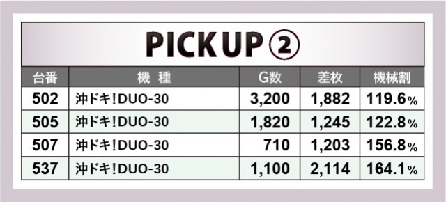 改めて『ハナハナホウオウ~天翔~-30』に触れると、回転数・差枚数ともに満足いく内容だったと想像できる。間違いなく沖スロ機種の盛り上げ役となり、コンスタントなハイビスカスの輝きでファンに笑顔をもたらしていた。また『沖ドキ!DUO-30』も負けじと好パフォーマンスを披露しており、優秀な数字を残したのが印象的だ。
