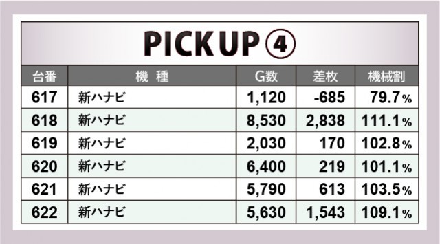 『パチスロ犬夜叉』は全台プラス差枚を達成し、それも3千枚クラスの出玉を放出して、盛り上がりに大きく貢献していた。『新ハナビ』もまた全台系の機種となっており、コンスタントなリーチ目出現によって、ファンは有意義な時間を過ごせたのではないだろうか。どちらもレバーを力強く叩く光景が目に焼きつき、それだけ手ごたえのある状況だったと容易に想像できたのも特筆すべきポイントだ。