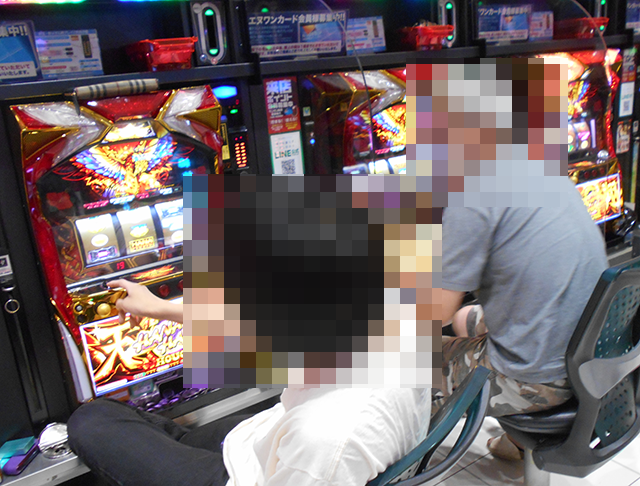 笑みを浮かべて遊技をおこなっている姿が印象的。機種の魅力を味わい、充実感を得られている様子だ。