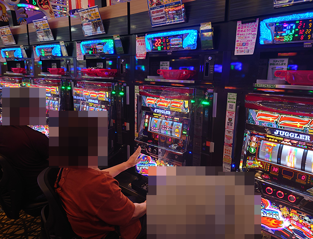 稼働している3台すべてに遊技を満喫しているような姿があった『ファンキージャグラー2』もみどころが満載!