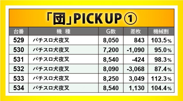 6.5号機の盛り上がりをリードしていた『パチスロ犬夜叉』は、全台がしっかりと遊技されていた様子が見受けられる。そのなかで533番台+3,049枚という記録が発生し、遊技するファンに笑顔をもたらしていた。
