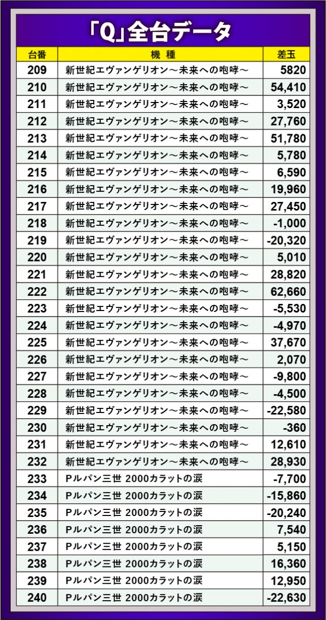 絶大な人気を誇る『新世紀エヴァンゲリオン〜未来への咆哮〜』では、5~6万発が多発する盛り上がりを披露。また『Pフィーバー 機動戦士ガンダムユニコーン』でも4万発OVERが見られ、人気機種らしい活躍を誇示していたのも見逃せない。そのほか、『Pルパン三世 2000カラットの涙』『P真・花の慶次3』にてコンスタントな大当りを確認でき、さらに『P大海物語4スペシャル』でも2万発OVERが3台発生し、各機種で凄まじい熱気が放たれていた。