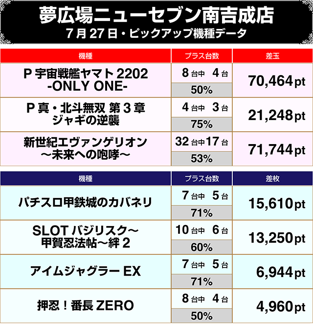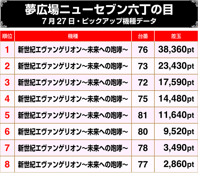『新世紀エヴァンゲリオン~未来への咆哮~』は32台中17台がプラス!