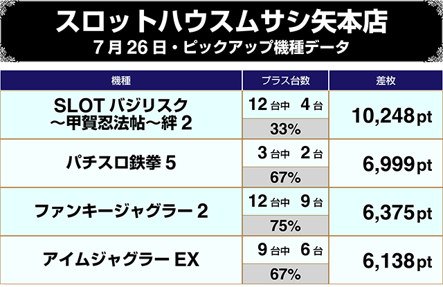 【7/26スロットハウスムサシ矢本店をピックアップ】