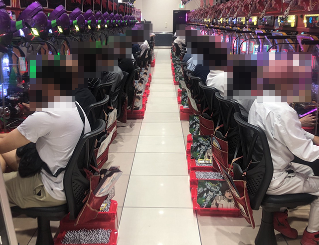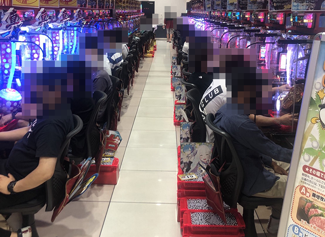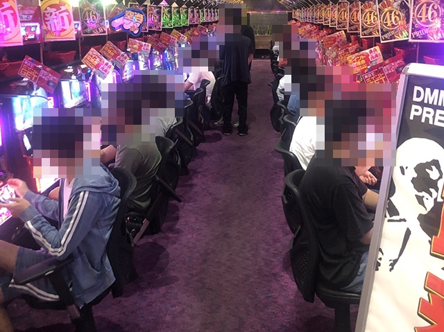 開店時間になると、パチンコとパチスロがともに、メイン通路のシマから順番に席が埋まっていった。