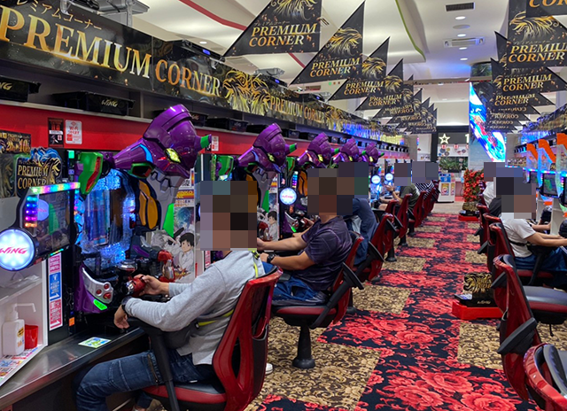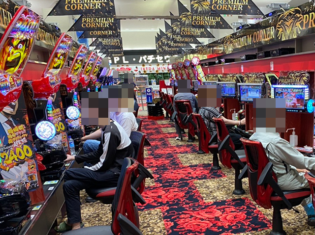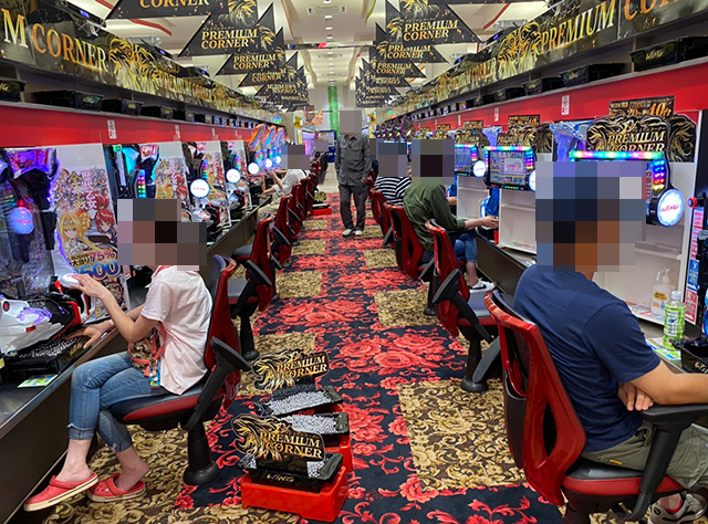 パチンコには、遊技スペースが広くとられているプレミアムコーナーがあり、ミドルタイプやライトミドルなどが設置されている。