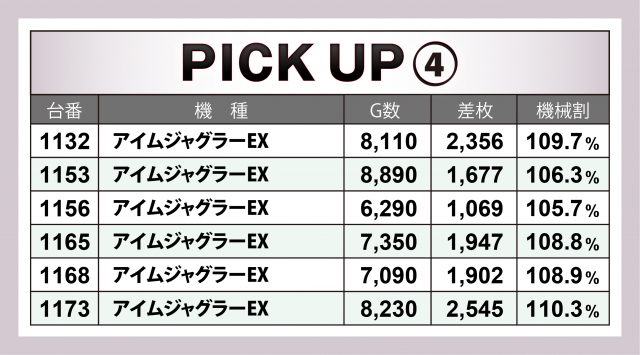 当日の20スロ全193台のトータル差枚数は前回より落ち込んだものの+27,039枚と快勝。評価ptは23と他店と比較しても高く、高水準の成績で締めくくった。これで「ヒーローズレポート」ではトータルプラス3連勝、引き続き今後もハイスコアが期待できそうだ。