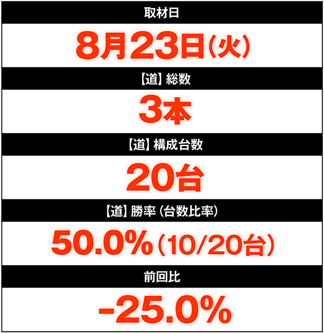 前述の通り、前回は【道】の勝率が75.0%だった同店。