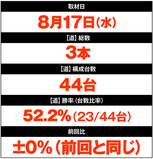 とはいえ、前回8月6日の【道】勝率は52.2%と同店にしては低めの数値であり、今回再び高い【道】勝率に期待していた方が多いのは容易に想像できた。