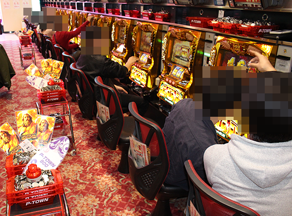 15時頃の様子をみると、20円パチスロでは「ミリオンゴッド-神々の凱旋-」が大盛況。