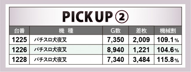 6.5号機『パチスロ甲鉄城のカバネリ』『パチスロ犬夜叉』は、活気と熱気に包まれていた。 1207番台10,450G・3,399枚や1228番台7,340G・3,484枚という記録が発生し、新時代の到来をファンに告げていたのが印象的だ。その他の台でもコンスタントな大当りが見られ、遊技するファンに笑顔をもたらしていたのも見逃せない。