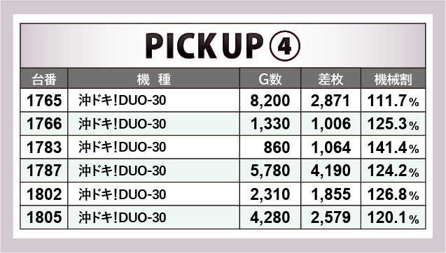 一方で沖スロ機種の盛り上がりも鮮烈だった。各所でドル箱を複数使用する光景が見られ、凄まじい熱気を放っていた一角だ。『チバリヨ-30』では2~3千枚OVERが複数発生し、『沖ドキ!DUO-30』でも1787番台+4,190枚という記録が生まれた。ボーナスの連チャンによって、ファンは有意義な時間を過ごしていたことだろう。