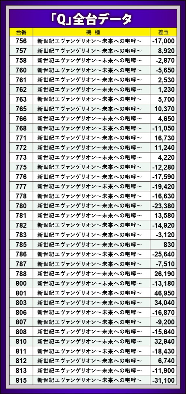 同店のパチンココーナーを牽引しているのが『新世紀エヴァンゲリオン〜未来への咆哮〜』である。801番台+46,950玉や803番台+34,040玉といった記録のように、各所で万発OVERが発生していた。ST突入と同時に怒涛の連チャンが見られ、遊技していたファンは充実のひと時を過ごしていたに違いない。