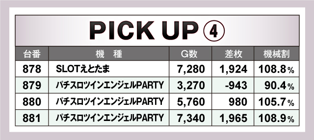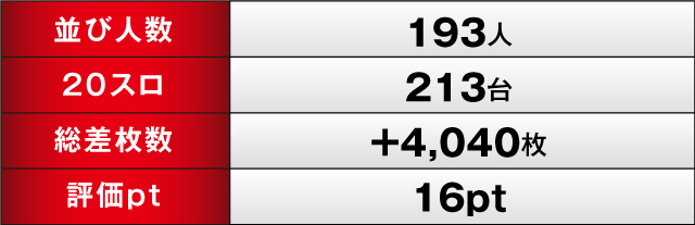 この日のトータル差枚は+4,040枚。辛くも勝利をもぎ取った形となったが、店内状況はこれまで見てもらった通り、優秀台や賑わう箇所は多数あったことから、申し分のない内容だったと言えるだろう。今回の取材で見事5連勝を達成した同店だが、今後この連勝記録がどこまで続いていくのかに注目してもらいたい!